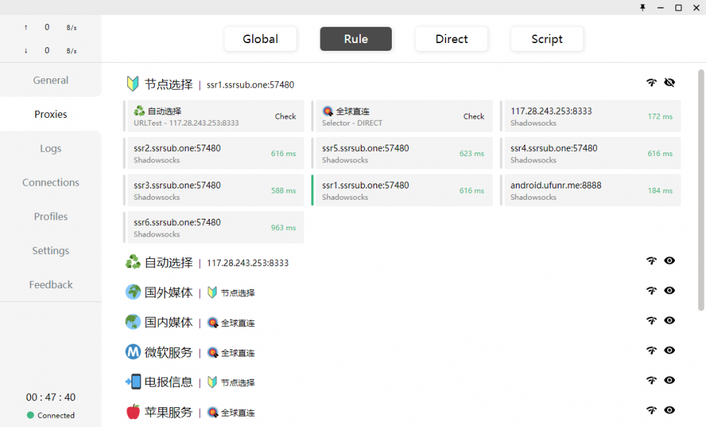 设计工具和软件对比 代理的方式有3钟,是4个工具的相互组合或者单独使用,会写出相应的功能以及优劣 3种方式如下: Clash(不支持代理游戏,支持代理浏览器) SockCap64 + v2rayN(支持代理游戏,每次需要先启动Sockcap64,再从中启动游戏,不支持代理浏览器,支持通过v2rayN自动切换节点)(推荐) Proxifier + v2rayN(支持代理游戏,后台运行Proxifier即可,可自启动,支持代理浏览器,支持通过v2rayN自动切换节点)(使用其他加速器时如UU,则不推荐) 可视化图表,更方便大家进行选择: 方式 支持代理浏览器 支持代理游戏 支持自动切换节点 Clash √ × √ SockCap64 + Clash × √ √ Proxifier + Clash √ √ √ 还有一些工具,Shadowrocket,v2RayN等工具,可以自行研究 请根据自身需求,来选择合适的代理方式,更好的代理方式,需要更复杂的设置流程,当然我们也会在下面的教程中,详细写出每一步步骤。 Clash 我们这里推荐一款Clash的代理工具,使用更加方便。 点击这里进行下载:Releases · Fndroid/clash_for_windows_pkg (github.com) 下载解压后,可以直接点击exe运行,也可以新建一个data文件夹,切换成便携模式,放到U盘里面随身携带。 【General】中文介绍如图所示,更详细的设置请阅读官方文档:快速上手 | Clash for Windows (lbyczf.com) 临时代理节点准备 如果只是临时用用,可以考虑别人爬取的全网免费代理进行使用 点击FreeProxies:Free Proxies (sspool.nl) 选择自己需要的配置,导入自己使用的工具,如SS,SSR,也可以通过代理订阅转换,导入到Clash,我这里提供了一份转换好的订阅,点击即可直接导入Clash 点击这里:clash://install-config?url=https://suo.yt/leZIK0Z 我们可以在【Proxies】切换节点,选择能够使用的节点 【General】打开【System Proxy】,就可以使用节点了 准备代理服务器 如果想使用体验更好的代理服务器,自己购买,或者自行搭建都是不错的方案,我这里推荐一个Naiko的代理,价格实惠,有兴趣的可以根据下面的教程,也可以自己准备代理服务器, 注册账号 如果不介意的话,可以点击下面的分享链接 飞木鱼:https://naiko.cloud/auth/register?code=YXGo 首先点击上面这个链接,会进入NaikoCloud的注册页面 填写必要的信息后,点击【注册】 购买套餐 点击【套餐商店】,可以根据自己的需求进行选择,根据自己需求自行选择,因为不限制设备,只要流量足够用,可以很多人一起公用一个套餐,我现在就5个人用一个套餐,手机端也可以。 购买套餐后,你就可以在首页看到你的套餐使用情况了 可以在【用户中心】最下面,便携导入这里,直接点击按钮导入Clash,就可以直接进行使用了 跟临时节点一样,可以在【Proxies】切换使用节点信息,因为已经做了规则处理,直接开启【System Proxy】就可以使用了 SockCap64 + Clash 首先要保证您已经成功配置好Clash,以及安装好SockCap64 打开安装好的SocksCap,选择代理按钮 然后直接手动添加一个节点,这个节点是ShadowsocksR的默认端口,如果你修改了,这里你需要自己修改,127.0.0.1,端口9870,代理类型Socks5,注意端口请根据Clash的端口来设置,默认是9870 添加完后点保存,然后把eve图标拖进来,双击运行即可 这样配置的SockCap64,可以通过ShadowsocksR的自切换节点,每次启动就不需要自己手动来切换节点了。 Proxifier + Clash Proxifier可以百度上搜索下载,这里我就不提供了 打开安装好后Proxifier 点配置文件→代理服务器→添加 如下图,注意端口请根据Clash的端口来设置,默认应该是9870 之后一路点确定,注意这个页面确定在这里 点配置文件→代理规则→添加 如下图 复制内容: exefile.exe;eve.exe;updater.exe;LogLite.exe;evelauncher.exe;fixpermissions.exe;LogServer.exe;rescache.exe;eveBanner.exe;ccpBrowser.exe;DirectXRedist.exe;LogServer.exe;maintenancetool.exe;QtWebEngineProcess.exe 到应用程序那里,然后,动作那里选择刚才的那个代理 然后到这个界面时注意编辑default规则为“direct” 否则网速会变慢! 然后点确定,你同样可以在文件里面选择自动打开,这样子每次开机就不需要手动启动了,直接运行游戏,如果在Proxifier看到一堆链接就表示代理成功了 proxifier你可以设置成后台运行,代理规则那里你可以添加任意程序,包括浏览器,都可以代理