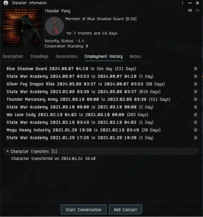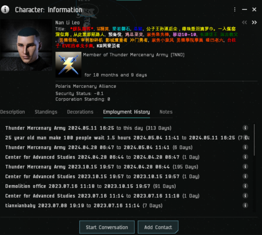 SGCN分裂出来的公司名字叫the skies descend,目前在等待BBC的考核期,估计不久就会加入BBC联盟。 而SGCN公司从事发时3374个角色,骤降到2765,离开了609角色,损失惨重。 事发前: 现在: