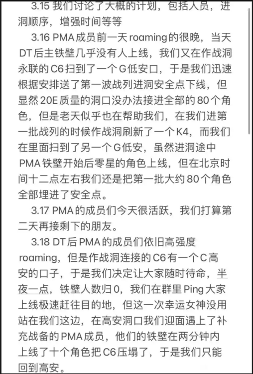 PLA军团2025年7月24日更新 一、最重要的一件事,战斗号和刷怪号分开,每一个人都需要搞一个常规常备号在C-J6MT,你现在做不到没关系,但是你要努力去实现这件事。现在开始只有在C-J6MT蹲专门战斗号,才可以得到月底的PAP奖励! 1,军团要求每个人有一个常规战斗号蹲在c-j6,从生产解放出来,这个号只打架使用,不用来生产的。死克在c-j6,平时也蹲在c-j6的,专门打架跟队,我们要养成这种游戏习惯。这样做对军团非常有帮助。 2,私聊给荣耀QQ12044225报备你的常规战斗号ID,报备之前,在军团交流群的群名片改好你的群名片,群名片的英文ID就改成你的战斗号名字,这是一个长期的积累的工作。 3,报备常规战斗号的好处: (1)可以得到游戏内的 核心战斗人员的 头衔 (2)可以得到QQ群头衔:核心战斗人员(3)每月超过3个STR的PAP可以得到军团发的PAP奖励 4,如果你不能专心的做好这件事,就不要来申请。CEO会不定时随机抽查常备战斗号的状态,常备战斗号被发现骑着刷怪船或者其他奇怪的船只,或者待的地方不对(不在联盟集结地点,而是在一些奇怪的地点,或者在刷怪地点),CEO有权取消该成员的核心战斗人员资格,并且停发当月的PAP奖励ISK。被取消的人员如果是被冤枉的,有权利进行申诉并且进行恢复资格。如果核心战斗人员资格被取消,当你准备好可以随时申请恢复资格。 二,军团现在有2个PVE驻地,主要军团驻地是77S8,次要军团驻地是CKX-RW。能搬家的都要搬!底特和伊梅的区别就是底特有值守,能保护你的ESS,伊梅的ESS自求多福。 (一)底特里德 1,中转物流点77S8-E,未来会有军团值守舰队,把你的刷怪号学一些反收割船的技能。可能会有搬家MOVE OP移动舰队,这个看集结的通知,如果没有赶上搬家舰队,可以自己前置眼睛移动你的刷怪船去底特。 2,建筑说明看下图,未来我们计划在77S8下一个星城,还在进行审批,审批完成后交给GSOL扔星城。目前联盟在O3-4MN有星城。 3,POS说明,以下16个星系全都有军团POS (二)伊梅瑟亚 1,中转物流点CKX-RW,无军团值守舰队,CKX附近的铁壁都保留。 2,建筑说明看下图 3,POS说明,以下6个星系有POS 三、搬家物流运输说明 1,运输公司请认准PLA Logistics。 2,我们会长期开通3条运输线,3个停靠点,分别是C-J6MT,CKX-RW,77S8-E。3个停靠点都互相通运输,这3个停靠点都可以接散单运输,运费均为450ISK/M3,包船35万立方,150M ISK。 3,军团驻地之间也是可以接运输的,但是只接包船价格。CKX与CKX周围一个旗舰跳的星系包船35万立方价格是50M。77S8与77S8周围一个旗舰跳的星系包船35万立方价格是50M。CKX与77S8周围一个旗舰跳的星系包船35万立方价格是150M。 4,CKX周围指的是下面的星系 5,77S8周围指的是下面的星系 四、预警频道 因斯姆尔,底特里德,邪恶湾流,灼热之径,地窖 -> fareast.imperium 特里菲斯,伊梅瑟亚,卡彻,绝径 -> east.imperium 五、主权升级设施一览(星海编辑):https://docs.qq.com/sheet/DU0hZTG92SHZLV3RM?tab=BB08J2 1,底特里德 2,伊梅瑟亚 3,备注 六、安等和刷怪插之间的关系 1,小1,小2和小3 2,大1,大2和大3 3,什么异常出什么死亡 七、BEEHIVE黑隐伞在C-J6MT,想要小旗舰和超旗开本的以及想挖矿的需要去C-J6MT的一个旗舰跳内进行。军团未来的月矿也会往因斯去申请。 (一)想使用黑隐加入BEEHIVE黑隐伞,需要学会A族的黑隐救世级,军团技能方案有学习方案,蜜蜂论坛的组是:https://esi.goonfleet.com/Group/1593 (二)旗舰开本需要进入相关的组: 1,小旗舰开本需要进HONEYBEE:https://esi.goonfleet.com/Group/1303 2,超级旗舰开本需要进SUPER HONEYBEE:https://esi.goonfleet.com/Group/1306 八、联盟跳桥规划原贴:https://goonfleet.com/index.php/topic/371377-insmother-etc-ansiblex-map/?p=9608224 1,使用DOTLAN做出来的图: Universe:https://evemaps.dotlan.net/universe/B:R1J8IORk 2,Detorid: https://evemaps.dotlan.net/map/Detorid/B:R1J8IORk 3,Immensea: https://evemaps.dotlan.net/map/Immensea/B:R1J8IORk 4,Insmother: https://evemaps.dotlan.net/map/Insmother/B:R1J8IORk 5,Scalding_Pass: https://evemaps.dotlan.net/map/Scalding_Pass/B:R1J8IORk 6,Tenerifis: https://evemaps.dotlan.net/map/Tenerifis/B:R1J8IORk 7,Wicked_Creek: https://evemaps.dotlan.net/map/Wicked_Creek/B:R1J8IORk 根据新的跳桥规划,77S8去C-J6MT有跳桥以后是7跳,还不错 第一跳:77S8过跳桥去u-mftl 第二跳: u-mftl过门去o3-4mn 第三跳: o3走跳桥去4ndt 第四跳: 4ndt土门去c-j6mt 需要4跳,分别是过gm-50y,l-mf3p,78-0r6和c-j6mt 总结就是2个跳桥 5个星门 九、关于收垃圾 Rub停工期间可以把垃圾挂给Eternal Starsea 星海(此服务为rub停工期间的军团兜底) 联系方式:QQ121025291 收垃圾地点:77S8周边18个星系和CKX本地 价格:吉他收单85% jitabuy 85% 回收内容:只收怪的掉落和打捞件 包含死亡产出 但是不收掉落的图纸(比如小马图) 合同金额:不用写合同金额,直接挂0价格合同,星海计算以后会给你打钱(带价格合同会被拒绝) 十、CKX去77S8的小旗舰路线:https://evemaps.dotlan.net/jump/Thanatos,544/CKX-RW:DR-427:O3-4MN:77S8-E 十一、CKX去77S8的超期路线:https://evemaps.dotlan.net/jump/Avatar,544/CKX-RW:EIH-IU:UM-SCG:MKIG-5:O3-4MN:77S8-E 如果还有什么没有说到的,后面再陆续进行补充,如果还有不懂的就在群里问,或者私聊荣耀QQ 12044225。但是在问之前,你要确保你读了这篇帖子。