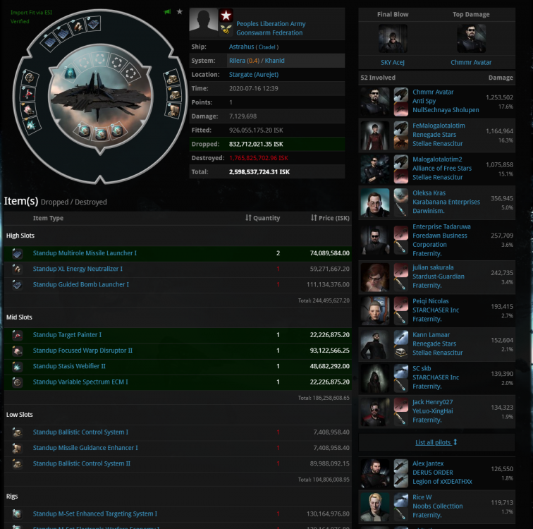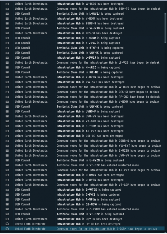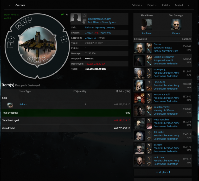 7月26日,星期日 1,今天下午12点50开始一直到19:00,一共有23个TIMER要防守,我们很好奇敌人是否会派舰队来绕。 2,下午12点50,LEGACY小弟200人舰队到达,https://adashboard.info/intel/local/view/97lZF2jD,舰队组成:https://adashboard.info/intel/dscan/view/OqKZNX0z 3,TEST230人舰队到达,https://adashboard.info/intel/local/view/ltMVXo8N 舰队组成 https://adashboard.info/intel/dscan/view/7FNKtIk7 4,FRT组了80人女妖队,https://adashboard.info/intel/dscan/view/R1gQqqzS 5, PH NC来了86人寒鸦舰队,https://adashboard.info/intel/local/view/v6wCPXRm 6,蜜蜂组了寒鸦队和截击队应对敌人的绕点,截击队:https://adashboard.info/intel/local/view/wVzcxEeD,寒鸦队与敌人在V-LE接战,https://zkillboard.com/related/30003953/202007260500/ 7,FRT12点50组队,绕爆了A3-LOG的IHUB之后,不到2点就离开了逑瑞斯,下午3点的时候,联军联合舰队一共打掉了4个IHUB。然而N老板发PING欺骗全体FRT说一共打掉了10个IHUB。本来说从13点干到17点的,结果搞了一个小时就离开了。 8,敌人接近400多人的舰队,游走在逑瑞斯,他们通宵达旦的绕点,超出了我的预料,我本以为他们会在北京15点之后放弃绕点,谁知道他们意志力意外的坚强,他们从北京时间12:50开始,一直400-600人保护绕点船,连续工作接近7个小时,连续摧毁了23个IHUB。并且增强了11个TCU和4个IHUB。 9,今天是战争第22天,今天被绕点53次,自从战争开始以来合计被绕点396次。 10,我们安排了新的刷怪地点,内容看军团邮件。 11,首先,我想感谢军团的各位成员,你们非常的优秀,我们一个军团使用UED联盟,把逑瑞斯这片没有人想要的荒凉之地充分的开发了起来,50个星系每个星系都安排了专门的人刷军事等级,刷起来之后住在这里维护ADM,我们做的非常牛逼,21天以来,我们顶住了来自几十个联盟的343次绕点进攻,以一个军团之力对抗几十个联盟,我们做到了,我们成功的拖延了敌人的进攻步伐,我们做的非常成功,我们已经赢了。现在也到了我们该轻松一点玩这个游戏的时候了,请各位训练好你的隐轰,我们要开启吃肉模式了哦。PVP主战斗号请继续在1DQ1集结,刷怪号我给你们安排16个星系继续刷ADM。我们继续战斗在前线! 隐轰配置频道: 帝国隐秘部队