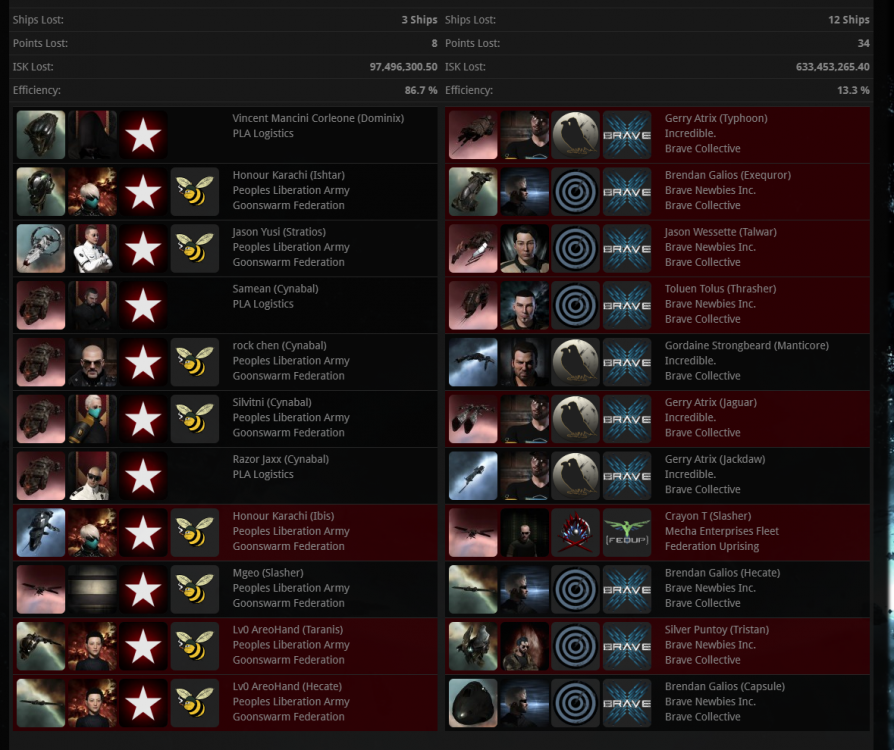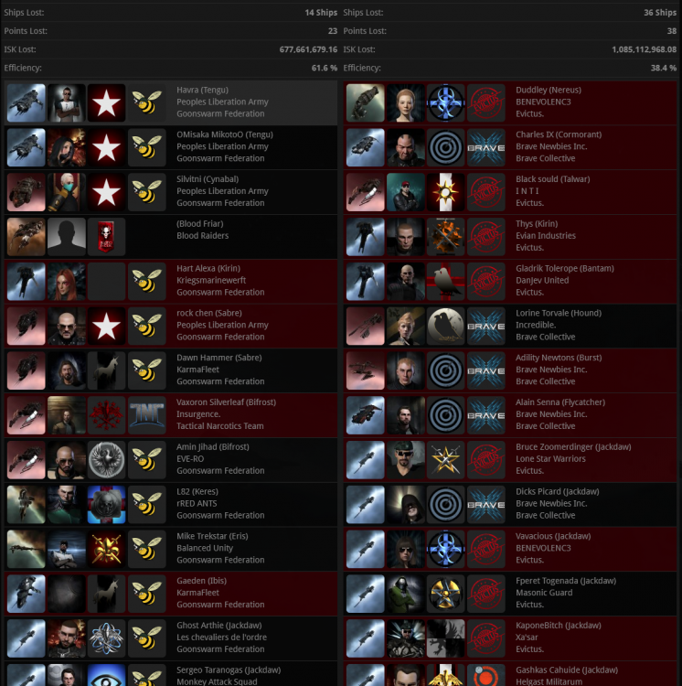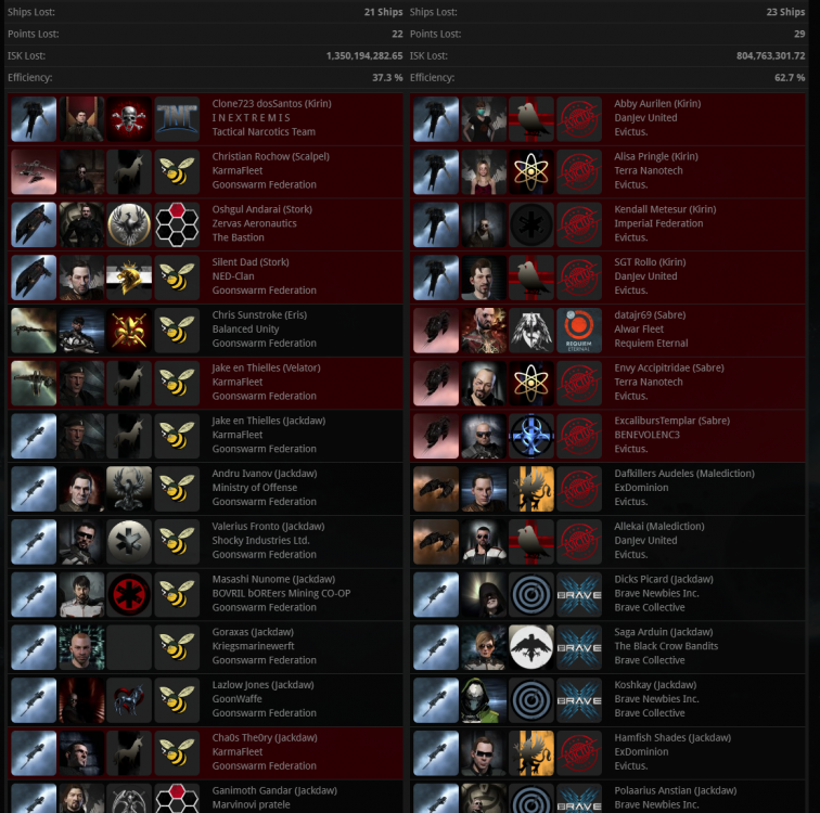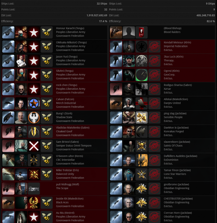 7月21日,星期二 1,中午12点,Federation Uprising30+寒鸦队强行对TV8 TCU进行了增强。 2,下午3点,Evictus. 30+寒鸦队又来对3-FK和ED-L9T IHUB进行绕点,蜜蜂果断出队防守,团灭敌军舰队,https://zkillboard.com/related/30004019/202007210900/ 3,今天是战争第17天,今天被绕点9次,自从战争开始以来合计被绕点266次。 4,PLA组织了10开多米刷3-FKCZ 军事等级,BRAVE又来投我们了,他的LEGION很愚蠢的在28KM显形,被我们直接用岗哨狙杀,这时候泡泡船跑了过来,本地大量进白,我果断喊了开跳刀,最后我们只损失了一个多米。https://zkillboard.com/related/30004019/202007211400/