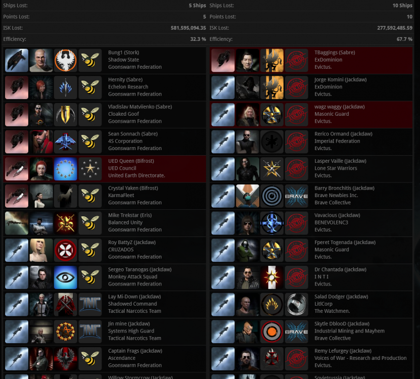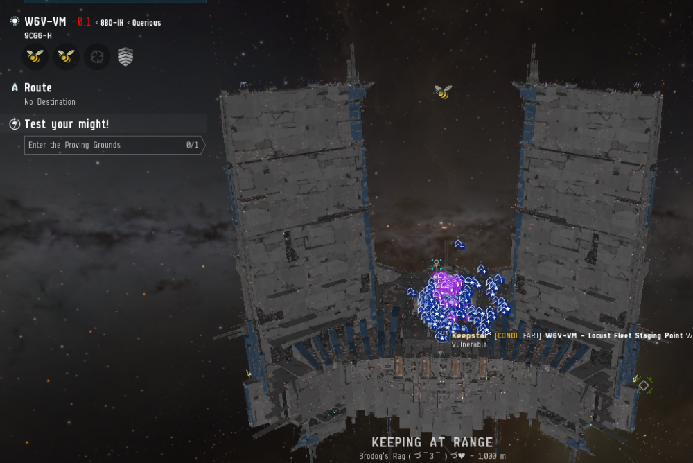 7月20日,星期一 1,蜜蜂开始解铆3-FKCZ星城,直接导致了联军持续不断的开始进攻3-FK ihub。 2,下午4点,Evictus. 30+寒鸦队进入3-FK,ED-L9T,9SBB开始强绕,蜜蜂起寒鸦队对敌军寒鸦进行了击杀,PLA自己组了TENGU小队对不和主舰队在一起的绕点船进行远程击杀,https://zkillboard.com/related/30004019/202007201000/,Evictus.猥琐至极的地方是,当蜜蜂舰队到达,他们就缩回EFA空堡,待蜜蜂舰队离开3-FK,他们就又返回3-FK继续绕点,如此反复。蜜蜂舰队只能等待进攻窗口关闭后离开。 3,今天是战争第16天,今天被绕点11次,自从战争开始以来合计被绕点257次。