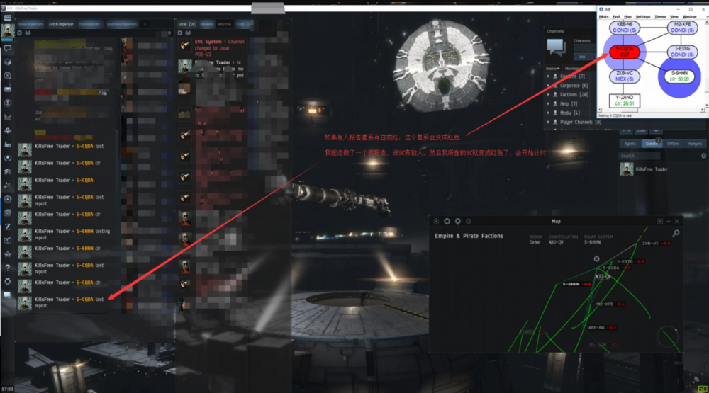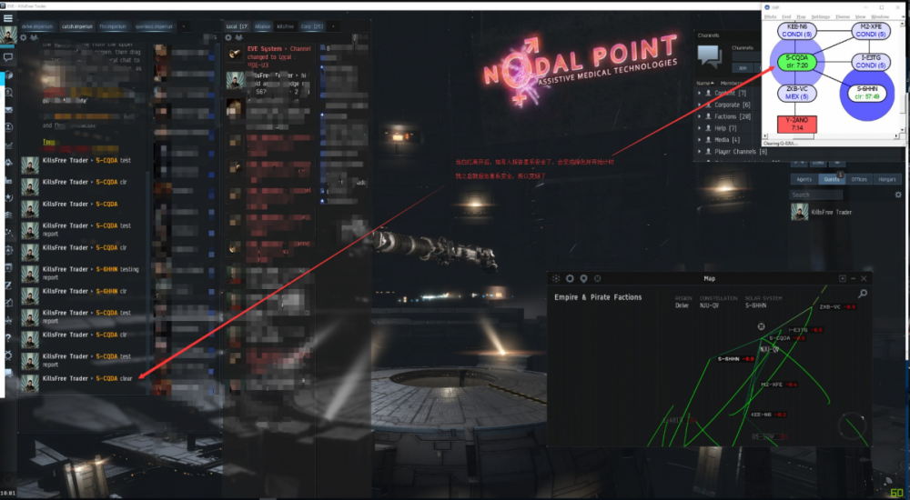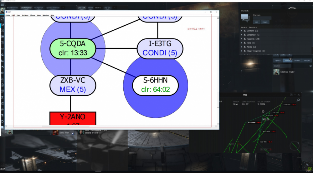 作者:洛杉矶-KillsFree-KK 简单易懂,轻松设置。 单显示器友好,可置顶透明。 自动追踪位置,人物。无延迟反应。 距离1 和 0 星系(system)语音警报。虫洞显示(wormhole)。 下载地址 QQ群文件:预警软件 IMP地址:https://github.com/3vi1/IMP/releases 使用步骤 下载 解压安装 双击启动,自动追踪人物 地图选择 添加情报频道(intel channel) delve.imperium catch.imperium ftn.imperium querious.imperium 游戏里也要加入相关情报频道。可最小化,但要确定是开着的。如多人物只需一人开。 白红所在星系收到报告后 星系安全后 调整页面大小 鼠标中轮调整星系图大小,笔记本试试触碰版相对应鼠标滑轮的操作。 完成设置,按O透明置顶,再按O恢复。 当然你也可以这样,坐看天下,尽显王ba之气。 如何报告敌人 请确认你在delve.imperium 频道(教程是特意选在人少的频道) 格式:拖拽当前星系 敌人数量 red =红名 neut=白名 如何报告安全 请确认你在delve.imperium 频道(教程是特意选在人少的频道) 格式: 拖拽当前星系 clear 或 clr 都可。 最后。如果你要到处跑,imp会自动追踪你的位置和视图。此软件依赖各位大佬提供信息。希望大家在受益同时也可以帮助其他人。