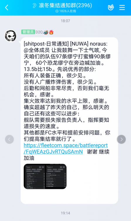 7月14日,星期二 1,早上起来看了今天N老板早早的就在凛冬集结群说了,下午有集结活动,我预感FRT要对3-FK下手,到了下午,果然在FAT集结了大量缪宁,直接来强绕3-FK节点,缪宁护着5个绕点幼龙强绕3-FK IHUB。蜜蜂果断开组缪宁队,战损比不好看,蜜蜂损失40亿,FRT损失120亿,https://zkillboard.com/related/30004019/202007140800/。 2,今天是战争第10天,今天被绕点16次,自从战争开始以来合计被绕点174次。SR趁3-FK大战,把北边A2和A3的IHUB绕增强了。 3,我6开多米刷3-FKCZ军事等级,被BRAVE的T3投了隐轰,击杀LEGION 一枚。