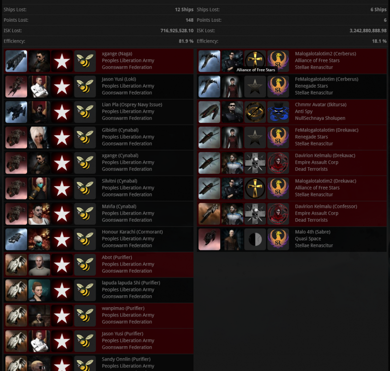 7月12日,星期日 1,我们晚上10点,CTA极限集结组了暴风队,防守低安的物流堡垒,敌人是红螃蟹和达尔文,我们成功出货。https://zkillboard.com/related/30003921/202007121500/ 2,我们在团灭之后,马上组织了第二波隐轰队,成功打死一个lesshak,之后再度团灭。https://zkillboard.com/kill/85559822/ 3,今天是战争第8天,今天被绕点14次,今天敌人没有成功增强任何节点,自从战争开始以来合计被绕点141次。